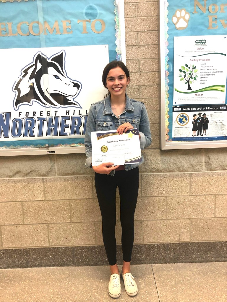 All qualifying FHPS/WMU Chinese Immersion Juniors interested in the scholarship were asked to prepare two essays: 1) an essay written in Chinese characters, along with an English translation; and 2) a short answer response, written in English. They were also asked to submit another written piece from their previous Chinese work, completed in grades 7-11, of which they are especially proud. In addition to the evaluation of all three of their written submissions by our judges, the final step of the scholarship competition is to participate in a real-time presentation in front of our panel of judges. Each finalist presented their submitted Chinese essay, read aloud in Chinese on Thursday, September 23 via Zoom.