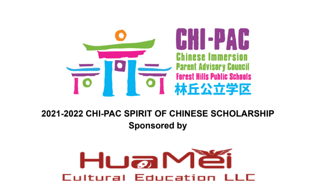 The CHI-PAC Spirit of Chinese Scholarship is awarded to a Forest Hills Public Schools Mandarin Chinese Immersion student who fulfills all of the requirements of the award as set forth below. The accomplishments of the students who apply for this scholarship will not be based on their Chinese language grade but will be based on their ability to communicate how learning Mandarin Chinese through the FHPS Mandarin Chinese Immersion Program has enriched his or her life or how they see having the language benefit them in the future. CHI-PAC is offering a $500 scholarship to the student who demonstrates the true “Spirit of Chinese,” by being a well-rounded student who embraces their Chinese Immersion journey and anticipates the opportunities that may be afforded to them after over a decade of Chinese scholarship.