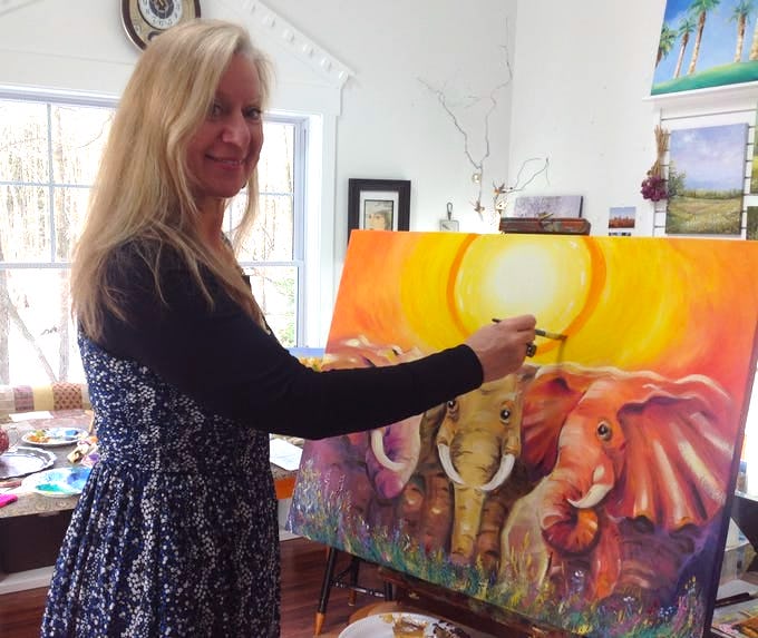 “What We Stand On” is an original oil on canvas painting. Inspired by Hindu myth of the three-headed elephant. Elephants can teach us Love, Commitment and Communication, the basis for Family. 11×14 print will be available for sale at $49 with 100% of proceeds going to benefit CHI-PAC.