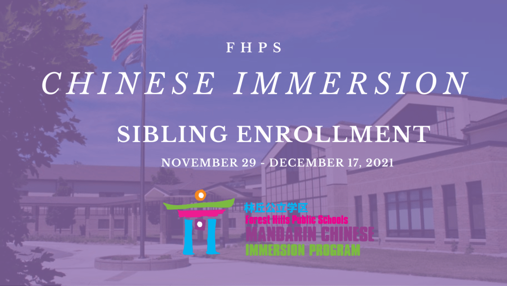 On Monday, November 29, 2021, enrollment will begin for the Mandarin Chinese Immersion Kindergarten class of 2022-2023. This first enrollment period (November 29 – December 17, 2021) will be for siblings of current Chinese Immersion K -12 students ONLY.. Any siblings not enrolled by December 17, 2021 will not have a guaranteed position in the kindergarten class and will be entered in the lottery with the other resident students.