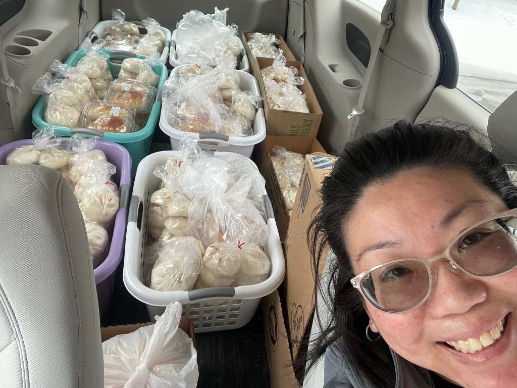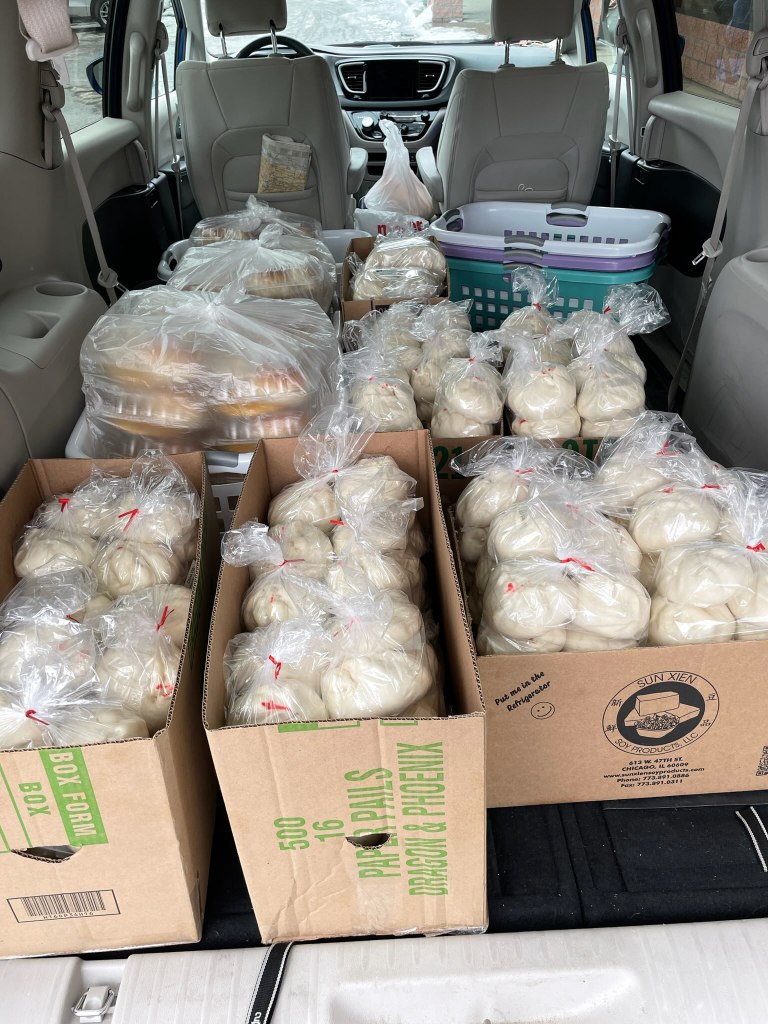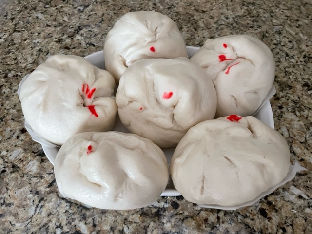 Package A – Six traditional steamed buns with bbq pork stuffing. These steamed pastries are very filling & large, 4″ inches in diameter.